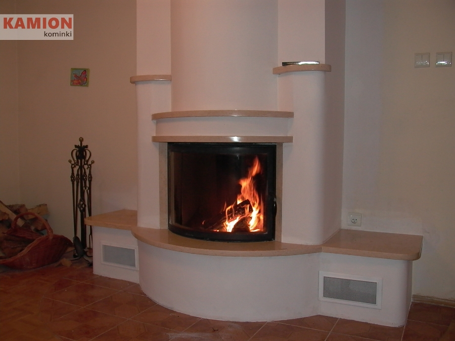 Kominek klasyczny nr.3 Wykonano w marmurze Giallo rena. Wkład firmy Spartherm